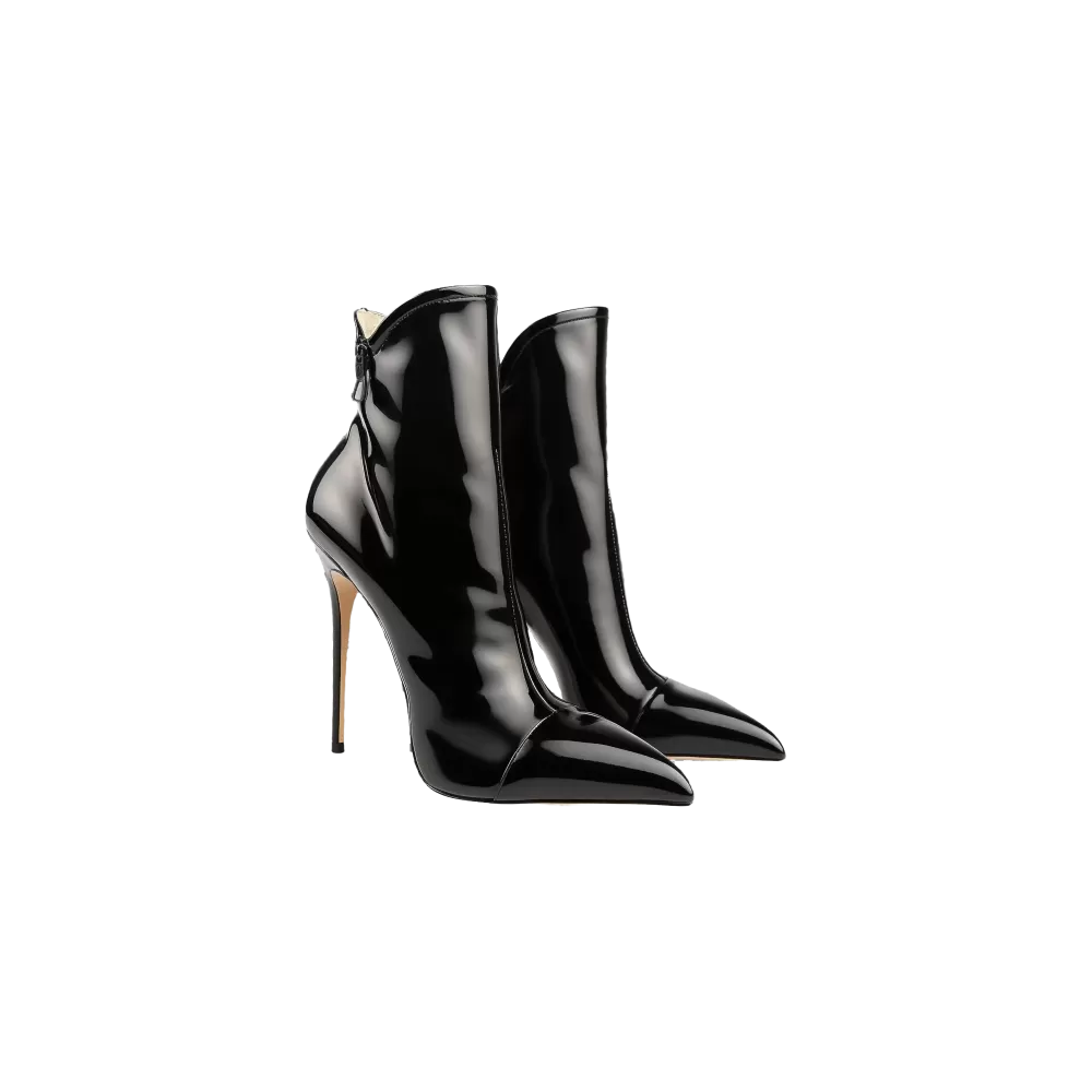 Obsidian Luxe are elegant, high-heeled black ankle boots with a glossy finish, designed to exude sophistication and luxury. A perfect choice for women who love a bold yet classic look.