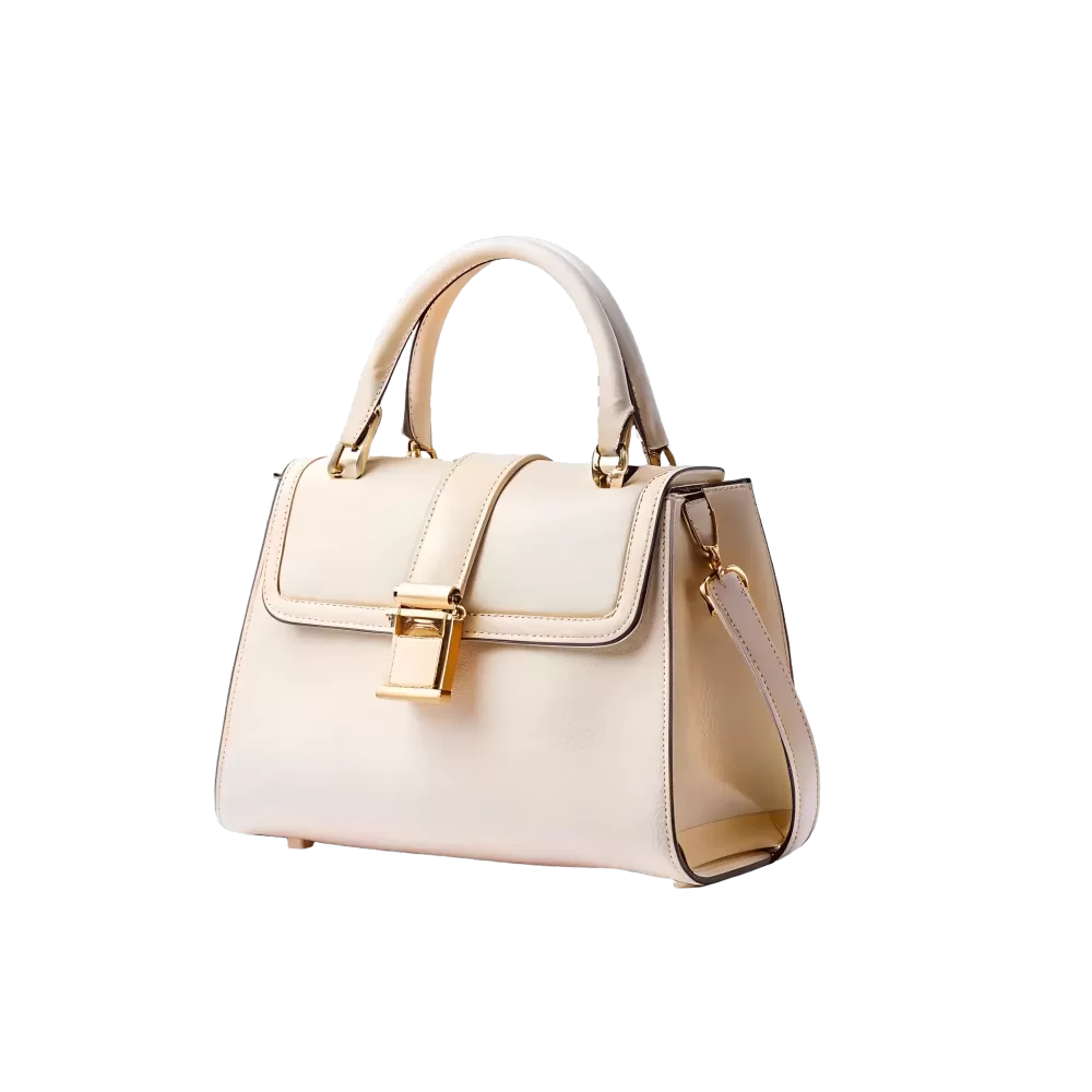 Ivory Luxe combines classic elegance with a modern approach to fashion. Made from premium-quality faux leather, it is not only beautiful but also durable and practical. Its ivory color blends seamlessly with golden details, giving the bag a luxurious appeal.
