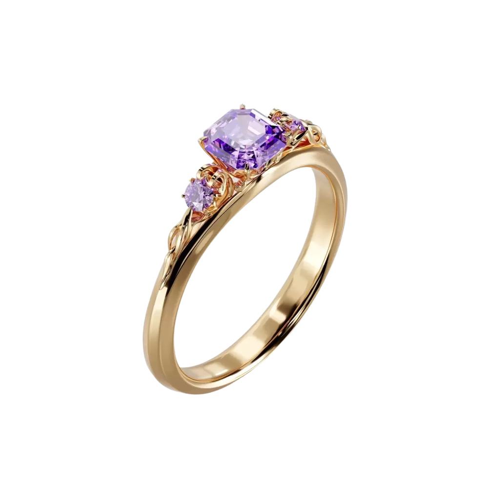 Purple Elegance to wyjątkowy złoty pierścionek z ametystem, który wyróżnia się swoim delikatnym, a zarazem luksusowym designem.