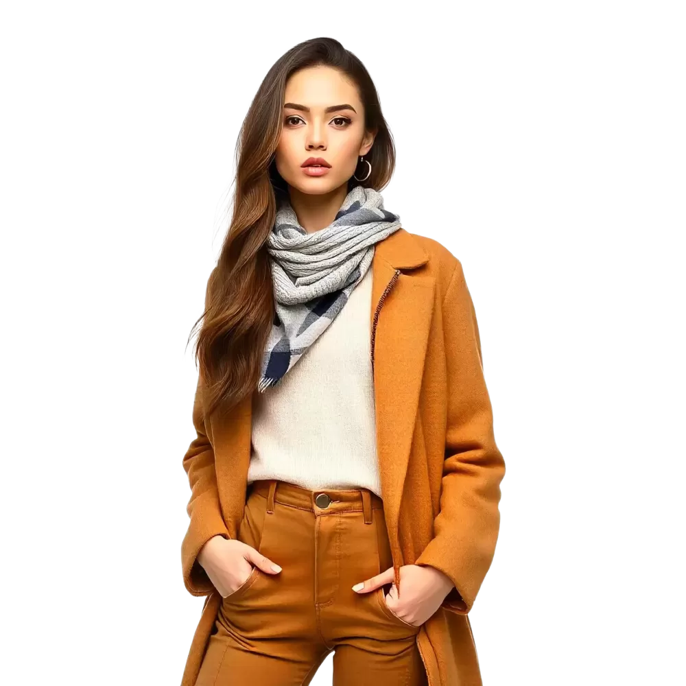Autumn Elegance to ponadczasowy płaszcz, który łączy klasyczną elegancję z nowoczesnym stylem. Dzięki precyzyjnemu krojowi i lekko taliowanemu fasonowi doskonale podkreśla kobiecą sylwetkę. Jego ciepła kolorystyka idealnie wpisuje się w jesienną paletę barw, umożliwiając stylowe połączenia zarówno z casualowymi, jak i bardziej formalnymi zestawami.