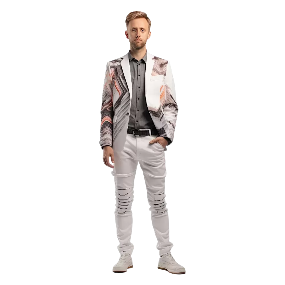 Avant-Garde White to unikalne męskie spodnie w odważnym artystycznym stylu, które łączą elegancję z nowoczesnym designem. Dzięki precyzyjnemu wykonaniu i wysokiej jakości materiałom, stanowią świetny wybór dla osób ceniących indywidualność.